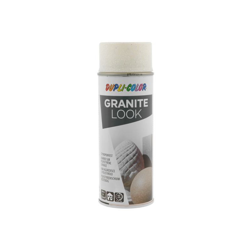 Οδηγίες χρήσης: Κατά την εφαρμογή ανοιχτόχρωμων αποχρώσεων Granit Style σε σκούρες επιφάνειες, εφαρμόστε πρώτα ένα ανοιχτόχρωμο αστάρι, για παράδειγμα DUPLI-COLOR Universal Primer. Συνιστάται τα πλαστικά αντικείμενα να ασταρώνονται με DUPLI-COLOR Plastic Primer. Αν χρειάζεται, τρίψτε ελαφρά την επιφάνεια. Αφαιρέστε τη σκόνη από το τρίψιμο. Η επιφάνεια πρέπει να είναι καθαρή, απόλυτα απαλλαγμένη από λίπη και στεγνή. Καλύψτε τις περιοχές που δεν θα βαφτούν. Ανακινήστε το δοχείο για 3 λεπτά. Δοκιμάστε το σπρέι σε μια μη ορατή περιοχή. Ψεκάστε από απόσταση περίπου 30 εκ. με αρκετές λεπτές στρώσεις σε διαστήματα 2 λεπτών. Για να σφραγίσετε και να προστατέψετε την υφή, μετά το στέγνωμα (24 ώρες), εφαρμόστε ένα βερνίκι (ειδικά για εξωτερική χρήση), π.χ. DUPLI-COLOR Zapon Spray.