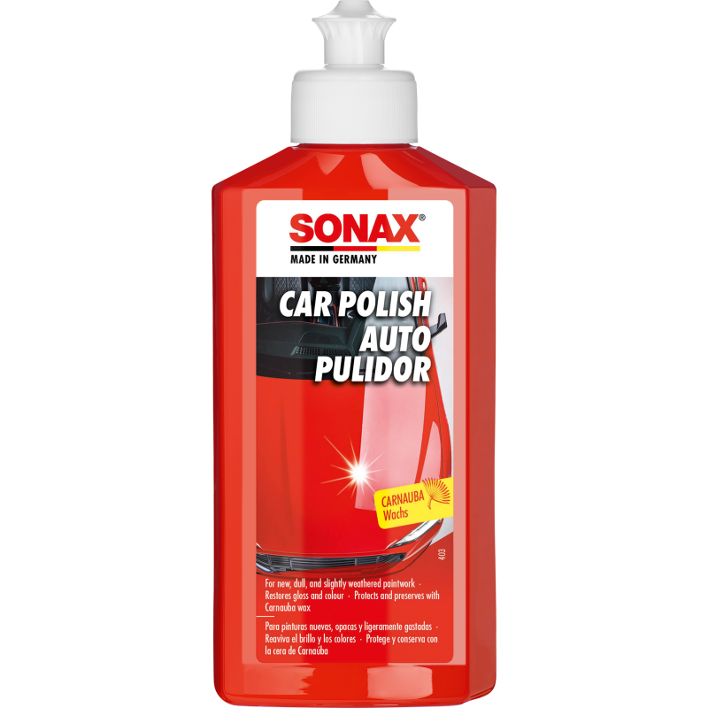 Πλύνετε το όχημα με το αγαπημένο σας σαμπουάν SONAX. Ανακινήστε καλά το μπουκάλι πριν τη χρήση. Εφαρμόστε μια λεπτή στρώση σε ελαφρώς βρεγμένη ή στεγνή επιφάνεια, χρησιμοποιώντας το εργαλείο γυαλίσματος P-Ball (417341) ή το πολύ μαλακό απλικατέρ (417141), και τρίψτε αμέσως με μέτρια πίεση. Εφαρμόστε σε ολόκληρα τμήματα κάθε φορά (π.χ. καπό, οροφή). Στη συνέχεια, αφαιρέστε τα υπολείμματα με ένα Πανί μικροϊνών (416200). Μην εφαρμόζετε σε άβαφες πλαστικές επιφάνειες. ΠΡΟΣΟΧΗ: Προστατέψτε από τον παγετό. Μακριά από παιδιά.